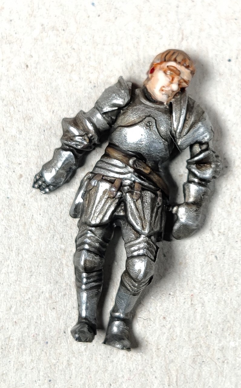 I had the crowned helm from the Perry Foot Knights box and I selected the Man at Arms figure on the right of the sprue